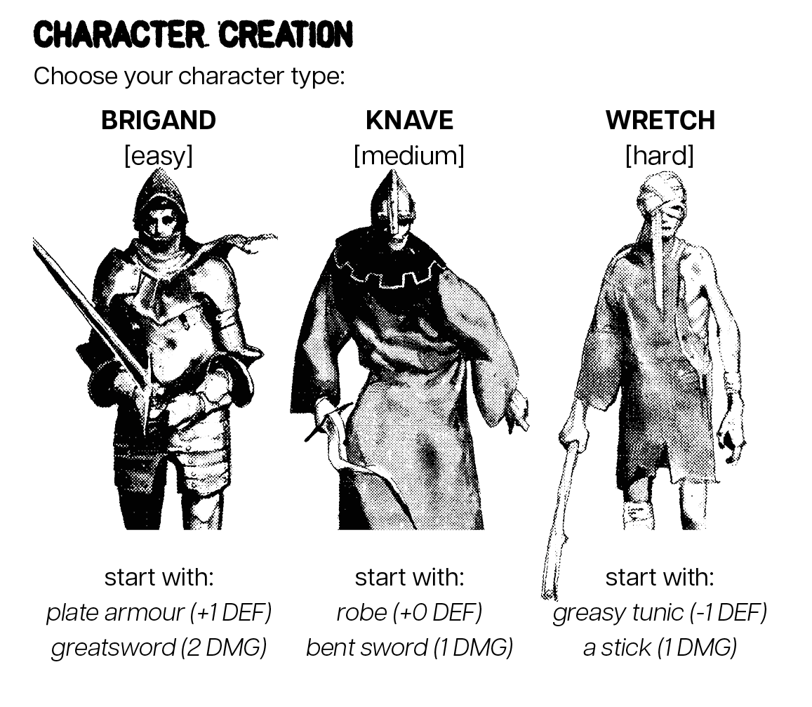 Dungeon Pulp is a dice rolling dungeon crawler in which you track a luckless adventurer's progress through a horrid acid-corrupted dungeon. It requires three 6-sided dice (two in a light colour, one in a dark colour) and a pencil and eraser. It is single player.